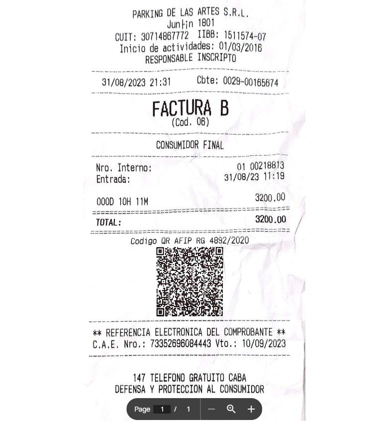 TEXTO DE DESCRIPTIVO: TICKET ESTACIONAMIENTO REUNIÓN GRAN HOTEL 31/08/2023